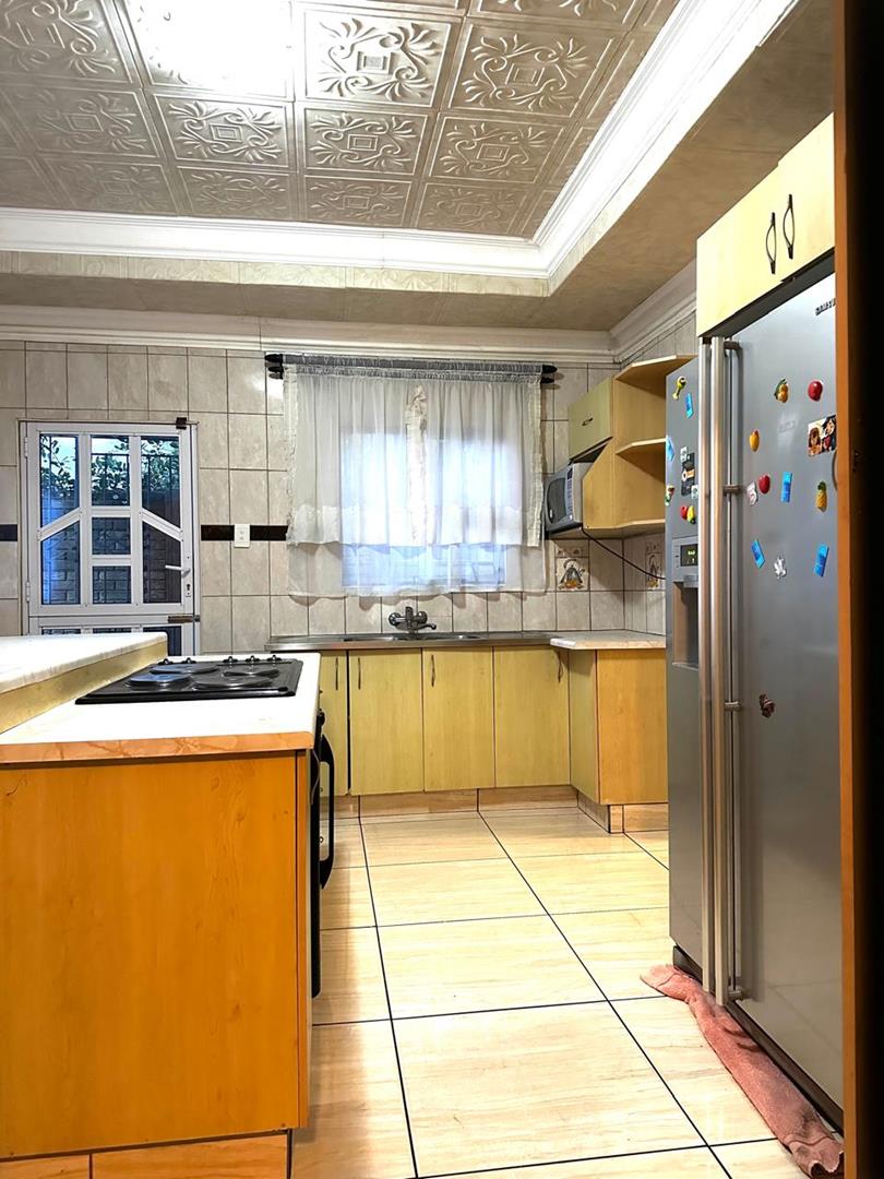 Additional features include an automatic garage, carport, and automated gate for secure and convenient access. The home is equipped with a TV aerial, satellite dish, and electric geyser, while aluminium window frames add a modern, durable finish. The tiled roof and brick walls enhance both the aesthetic appeal and structural integrity of the property.
