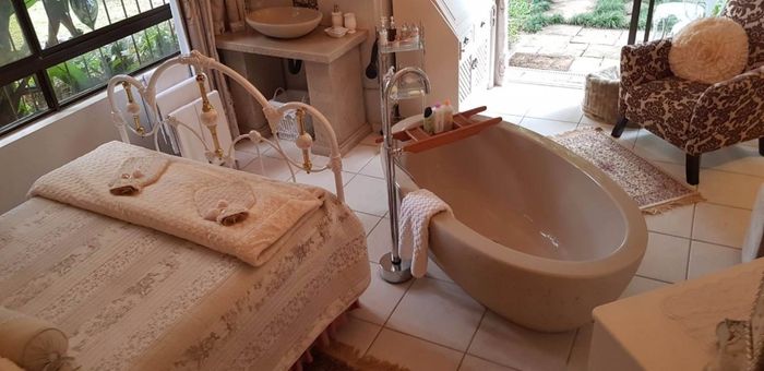 The main bedroom is a standout, featuring a luxurious en-suite complete with a double basin vanity, freestanding bath, and a spacious indoor/outdoor shower. Two of the remaining four bedrooms also have en-suite bathrooms, with one bedroom positioned apart from the others—perfect for guests or extended family.